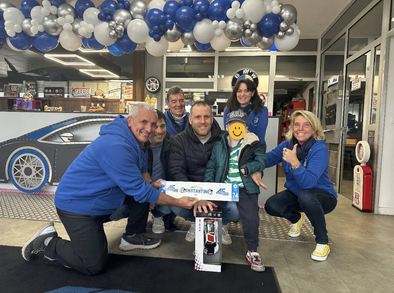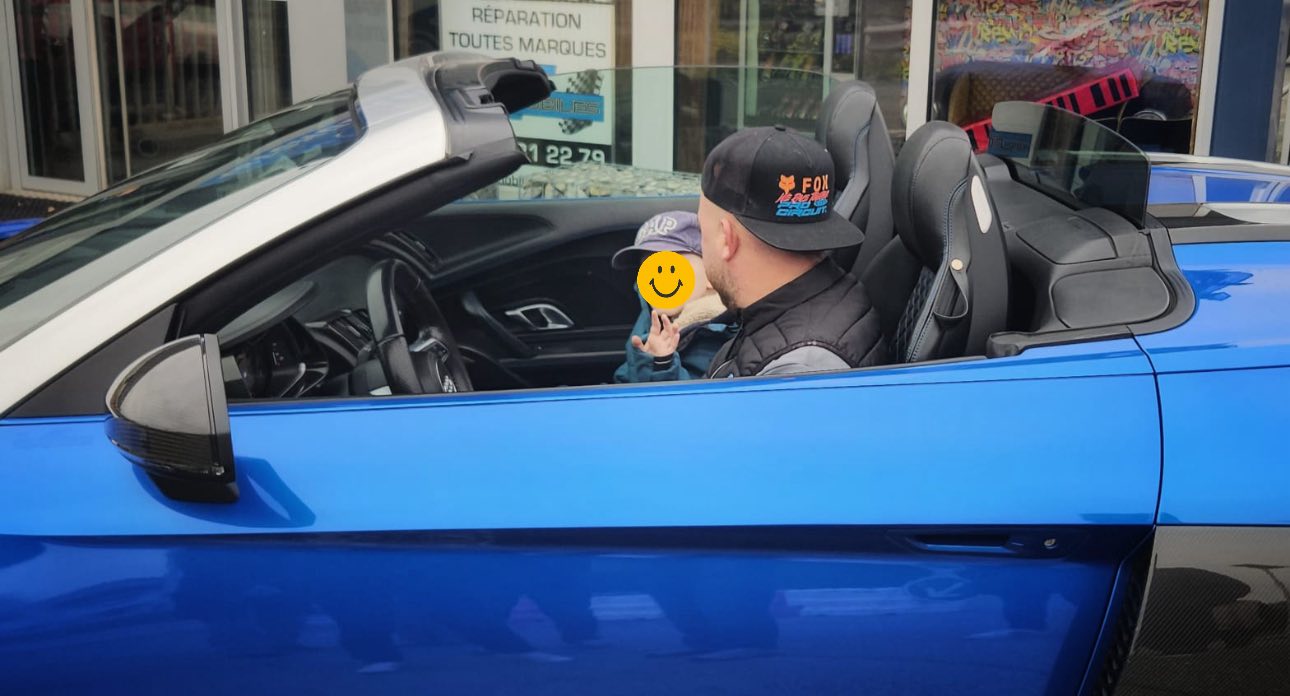 Les propriétaires du garage ont offert une plaque de voiture personnalisée avec son prénom et une Porsche télécommandée