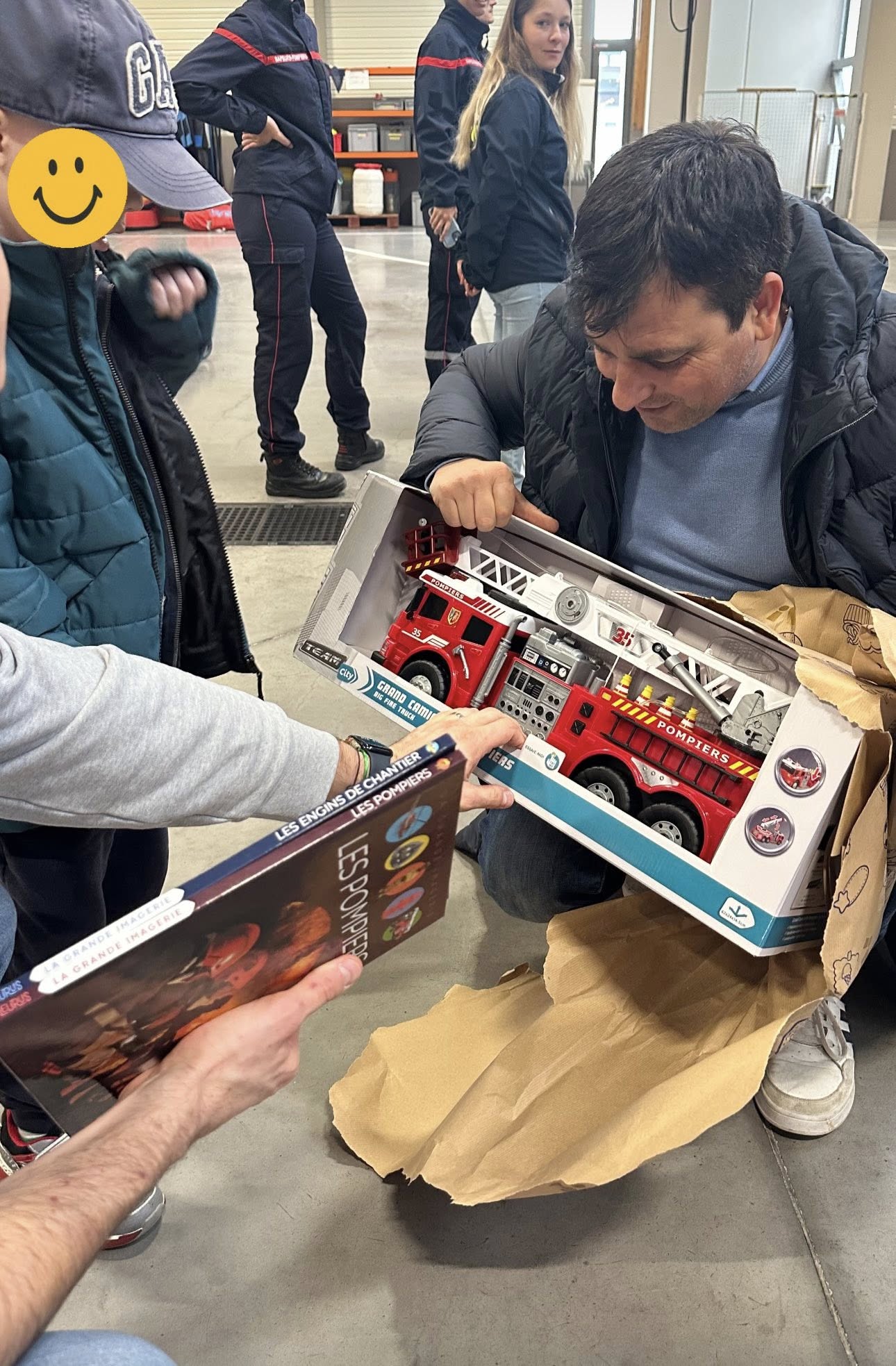L’Amicale Pompiers Thonon a offert à Constantino un magnifique camion de pompiers avec un livre sur le métier de pompier.